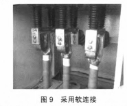 (2)穿墻套管下部與電纜銅搭子導體部分聯接選用軟聯接過渡,如圖9所示,可以去除硬聯接產生的應力,一同消除電纜通電后產生的電動力,隔絕了對穿墻套管的應力效果。