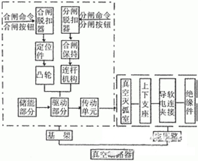⑤正確履行操作程序和宣布切換信號(包含指示信號、控制信號和連鎖信號)在進行高壓戶內外真空斷路器結構剖析時,不論何種結構方法的斷路器均可將其操作系統分為控制、動力和傳動三部分